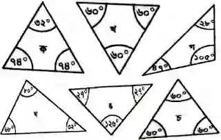 ৬. কোণভেদে ত্রিভুজ কত প্রকার ও কী কী?