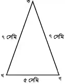 খ ত্রিভুজের ক্ষেত্রেঃ তিনটি বাহুর দৈর্ঘ্য যথাক্রমে ৪.৭ সেমি, ৪.৭ সেমি, ৪.৭ সেমি।