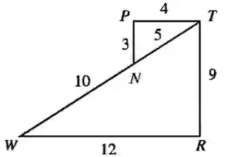 △TWR এর বাহুগুলোর অনুপাত= TR : WR : WT =9 : 12 : (10+5)=9 : 12 : 15 =3 : 4 : 5