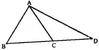 ৮. ABC একটি সমদ্বিবাহু ত্রিভুজ এবং এর AB=AC; BC কে যেকোনো দুরত্বে D পর্যন্ত বাড়ানো হলো। প্রমান কর যে, AD>AB.