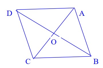 মনে করি, ABCD একটি সামন্তরিক। AC ও BD কর্ণদ্বয় পরস্পরকে O বিন্দুতে ছেদ করে। AB=AD হলে, প্রমাণ করতে হবে যে, AC ও BD পরস্পরকে O বিন্দুতে সমকোণে সমদ্বিখন্ডিত করে।