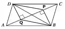 ABCD চতুর্ভুজে B ও D বিন্দু হতে AC এর উপর BP এবং DQ লম্ব আঁকি। প্রমাণ করতে হবে যে, BPDQ একটি সামন্তরিক।